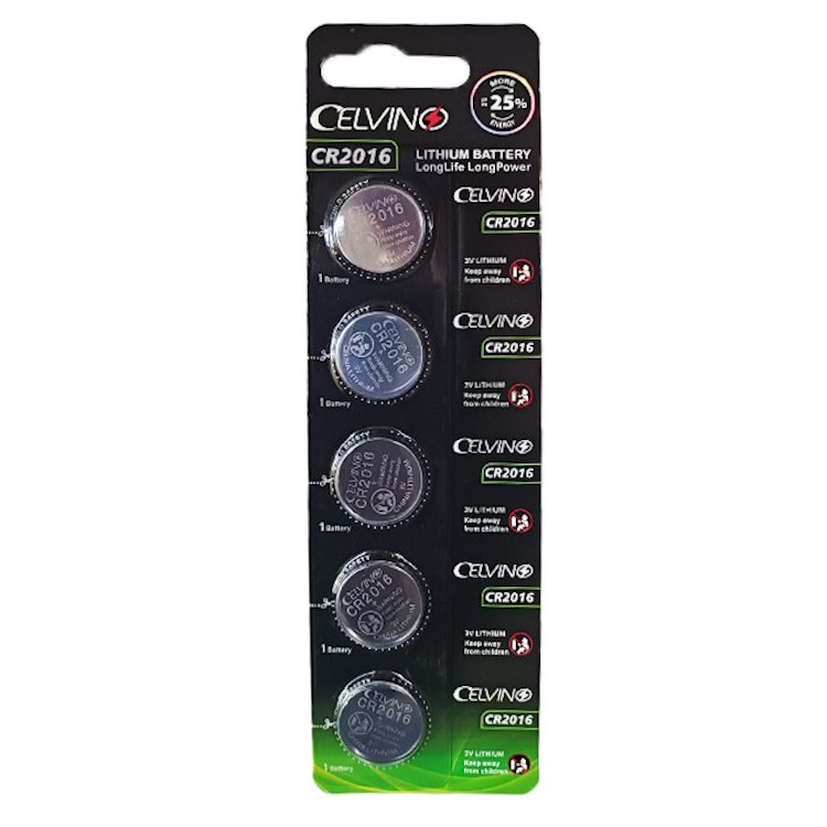باتری سکه ای CR2016 Celvino از نوع باتری های لیتیومی می باشند. ولتاژ این باتری 3 ولت می باشد. این باتری ها دارای ظرفیت الکتریکی زیاد و ویژگیهای ولتاژ پایدار می باشند. (تعداد در پک 5 عدد)